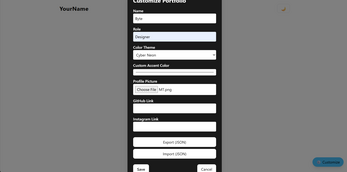 Full Portfolio Project (In-Web Portfolio Customizer). HTML/JS/TAILWIND CSS